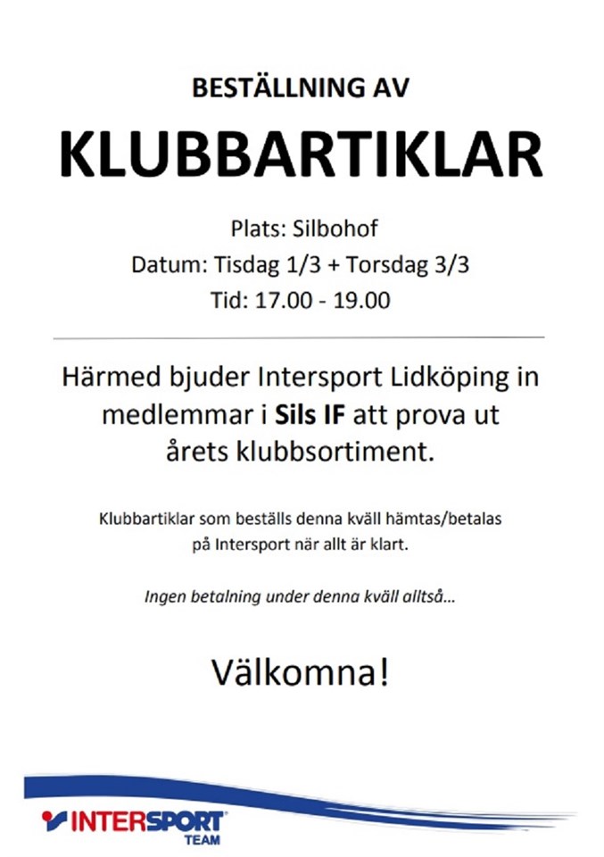 Intersport har bokat in två klubbkvällar och besöker oss på Silbohov den 1 och 3 mars. 1 mars har tjejerna möjlighet att komma och titta på kläder, 3 mars välkomnar vi killarna! Tid: 17.00-19.00 Information kommer spridas i kanaler när det närmar sig! Mvh Källander Ungdomssektionen 10 feb 2022 2kommentarer